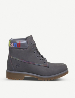 Timberland slim premium 6 inch boots grey rainbow collar.